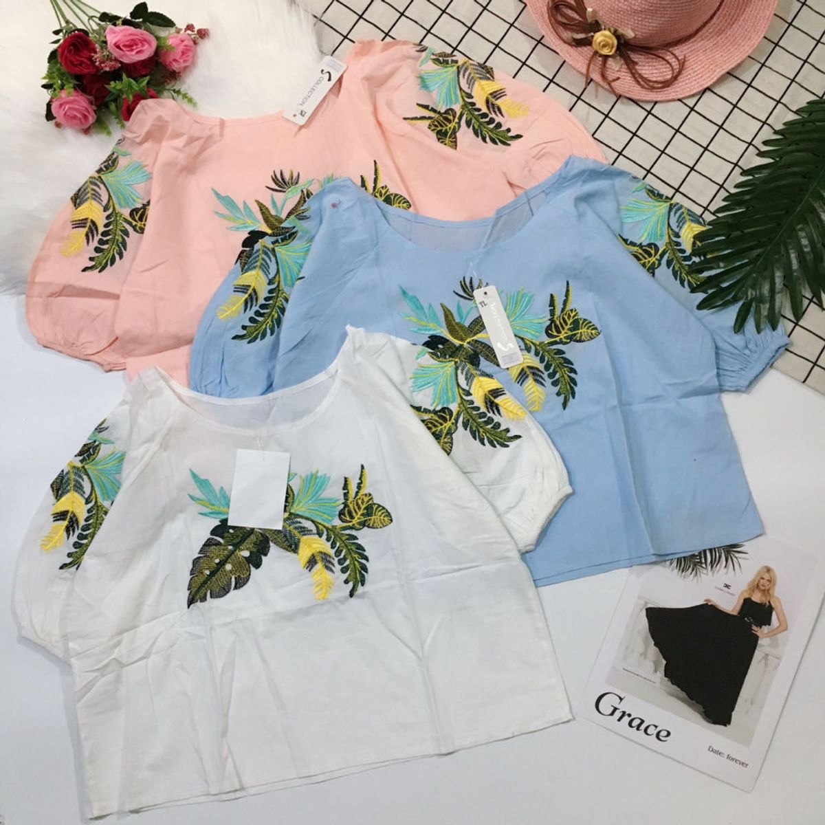 Áo kiểu thêu lá cây giá sỉ/bán buôn