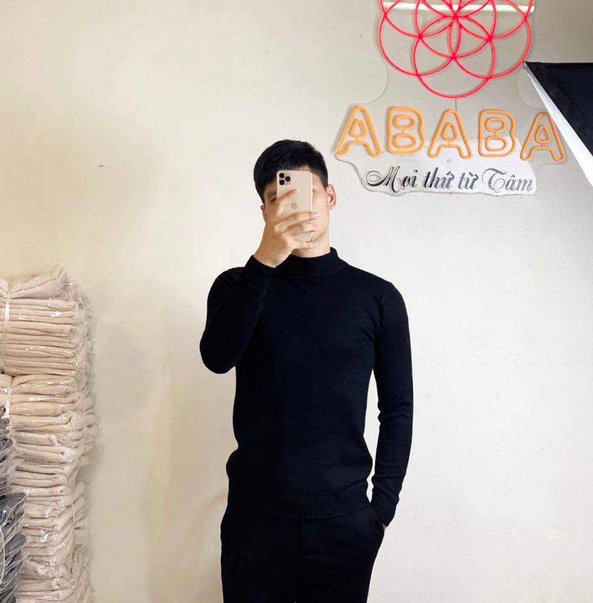 Áo len nam cổ lỡ 5p 5cm màu Đen hàng Quảng Châu mềm mịn đẹp 5p-1920-đen