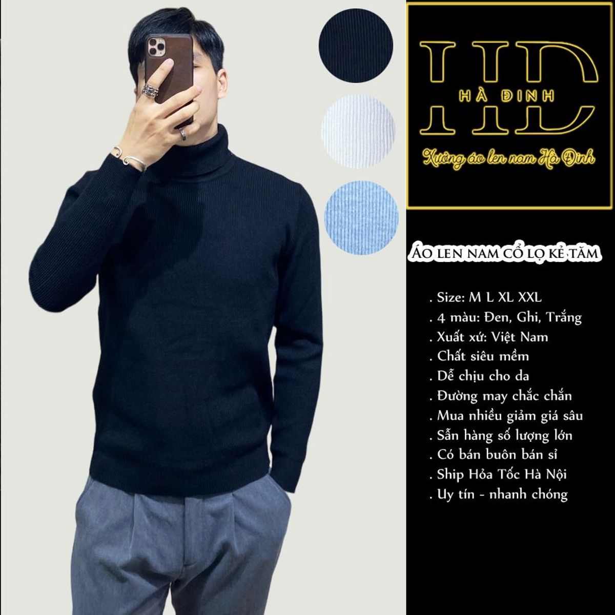 Áo len nam cổ lọ kẻ tăm hàng kĩ dày dặn lên dáng chuẩn đẹp Ababa là sản phẩm len nam cao cấp, ấm áp và sang trọng.