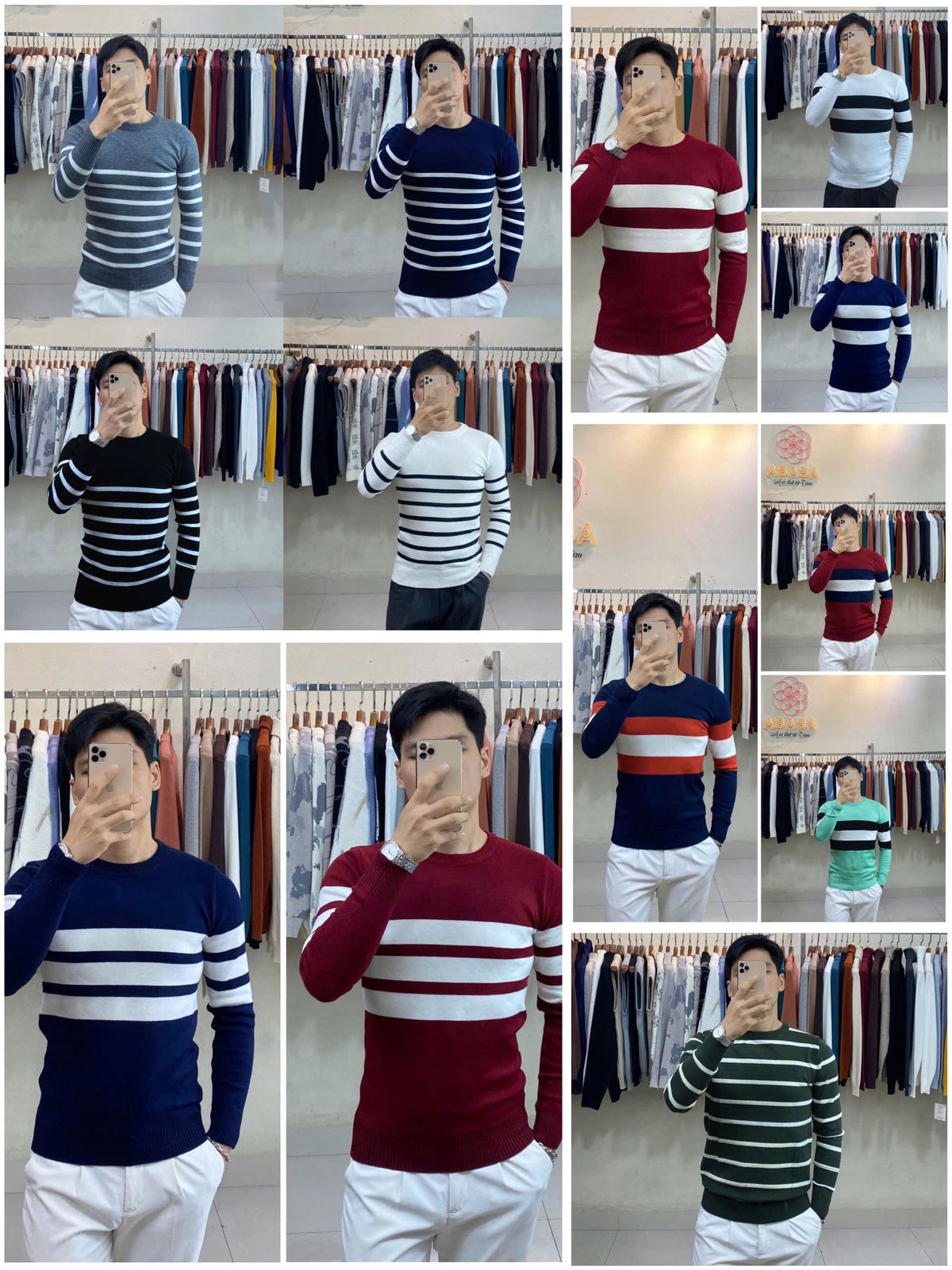 Hy vọng Xưởng thời trang Hà Đinh sẽ nhận được đơn hàng mua Áo len nam cổ tròn kẻ, len dệt kim, kiểu dáng Hàn Quốc của bạn <3