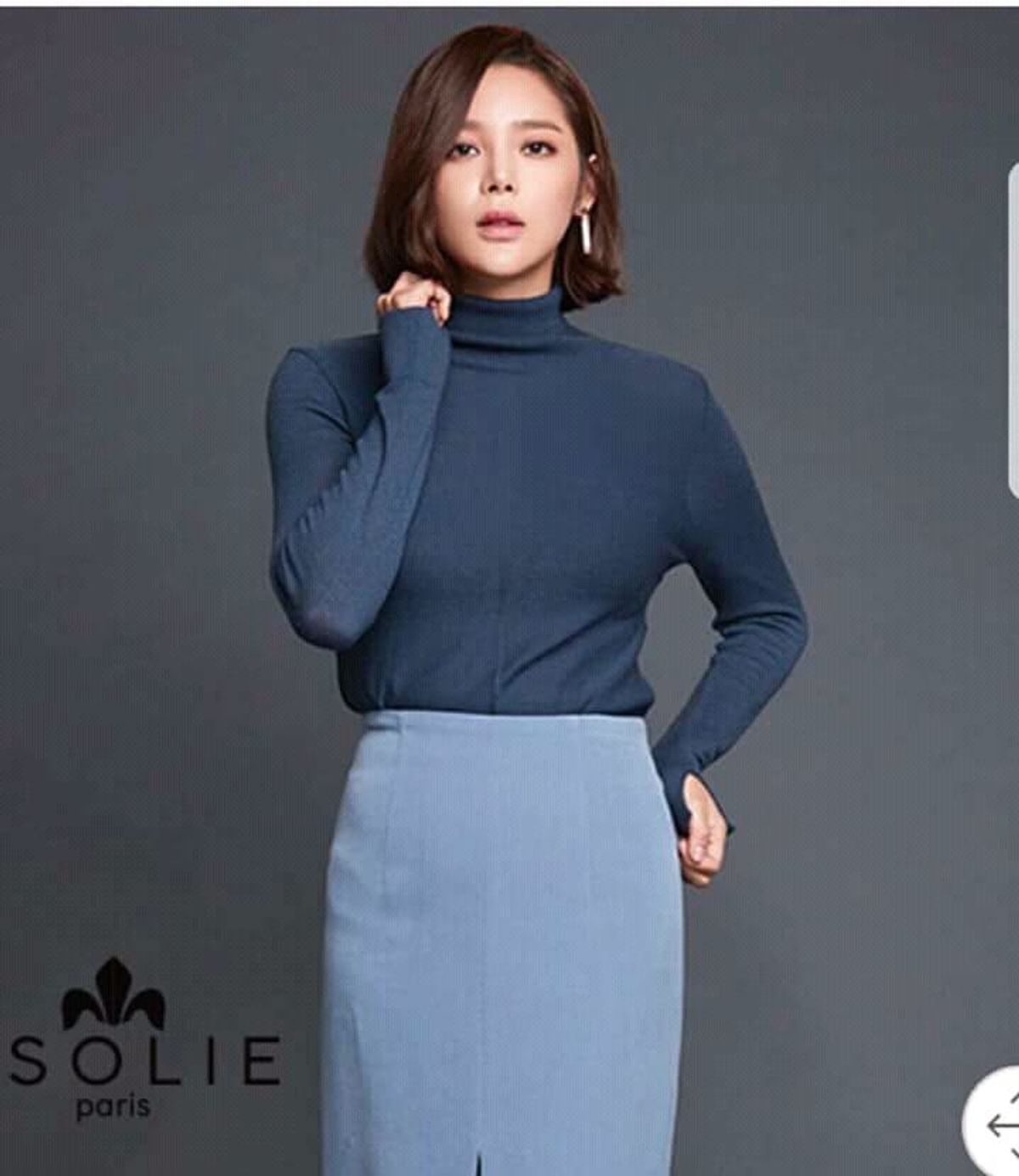 Áo len cổ lọ màu xanh Ssolie xuất Hàn dư , full box. Sợi cashmere mềm mại, ấm áp, không dặm ngứa.