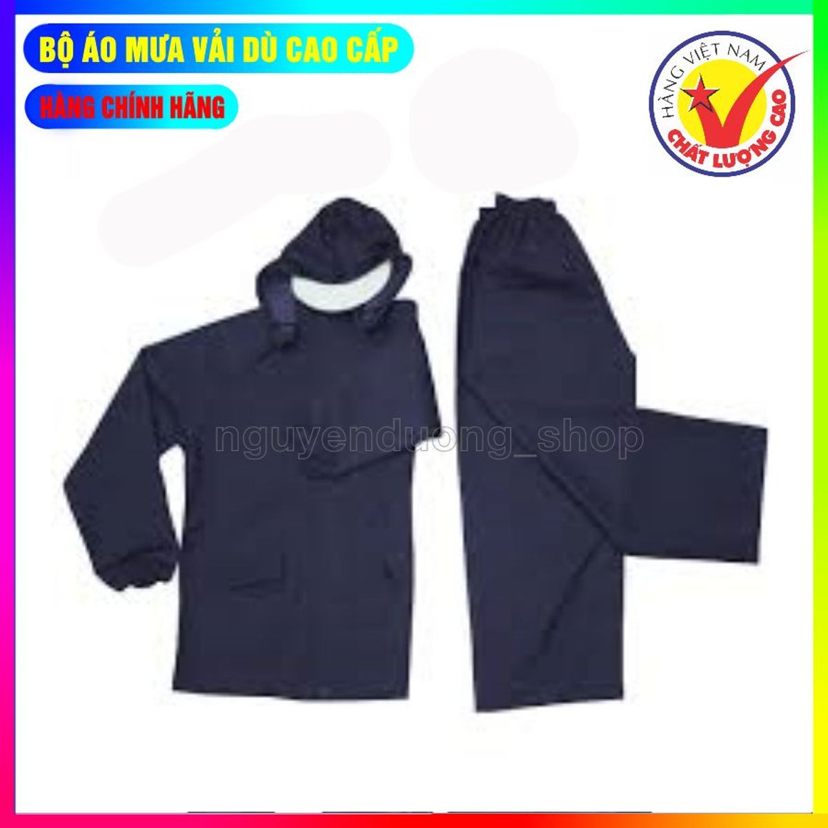 – Bộ quần áo mưa tím than sản xuất chất liệu vải dù tráng nhựa không thấm nước.