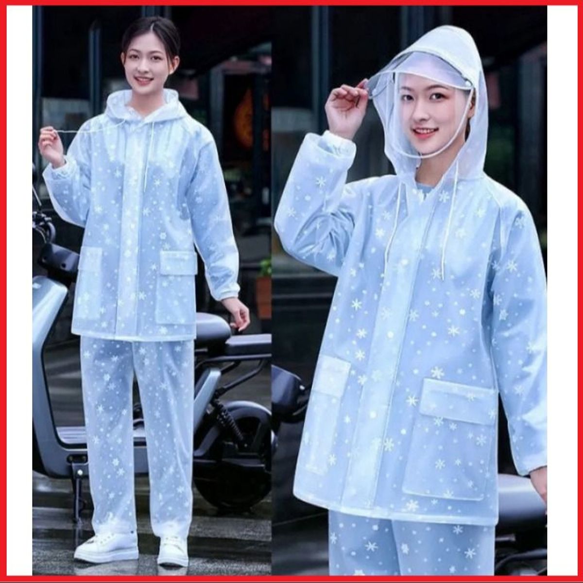 Thiết kế độc đáo với họa tiết hoa tuyết xinh sắn, đặc biệt áo mưa dạng trong nên bạn vẫn có thể diện đồ bên trong ngay cả khi mặc áo mưa