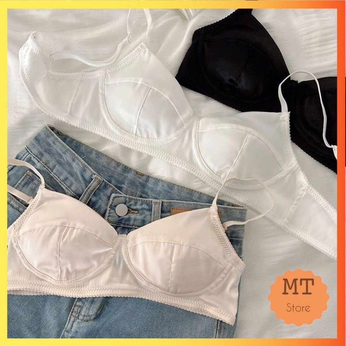 Áo Bra nữ cài trước không gọng, áo lót nữ cotton đệm mỏng quai mảnh 2 dây sợi bún