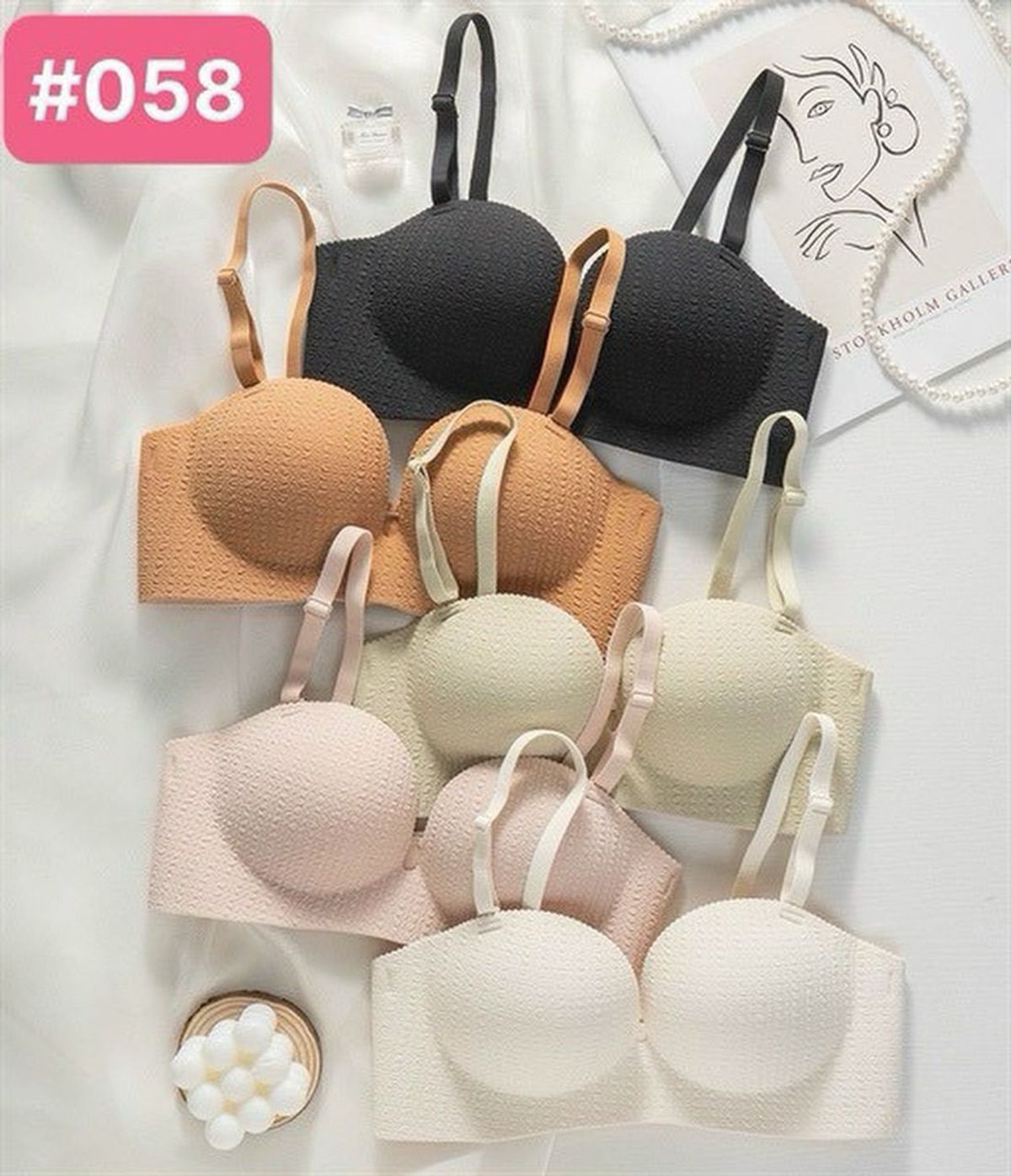 Áo Ngực Su Không Gọng Không Đường May Chống Chảy Xệ 058ngaÁo ngực đúc su mẫu mới năm 2024, có thể vừa mặc có dây vừa mặc không dây bao chống tụt, bản dây ba móc cài giúp che mỡ lưng mỡ nách, có kèm dây chống tụt phía sau để có thể mặc được kiểu chống tụt không dây.Size 34.36.38Màu sắc: trắng, đen, hồng, nâu