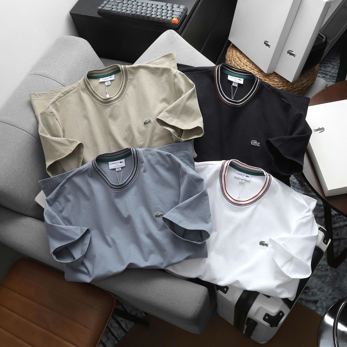 Áo Phông Nam Lacoste Regular Fit Ribbed Collar Cotton Tshirt 4 màu