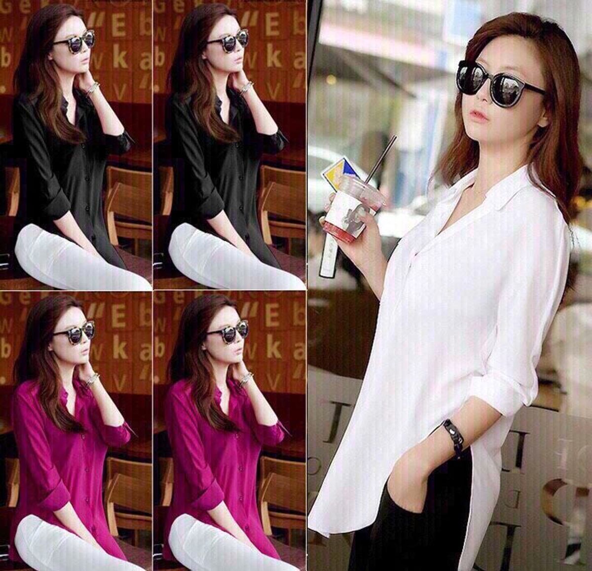 Áo sơ mi form dài xẻ eo giá sỉ/bán buôn