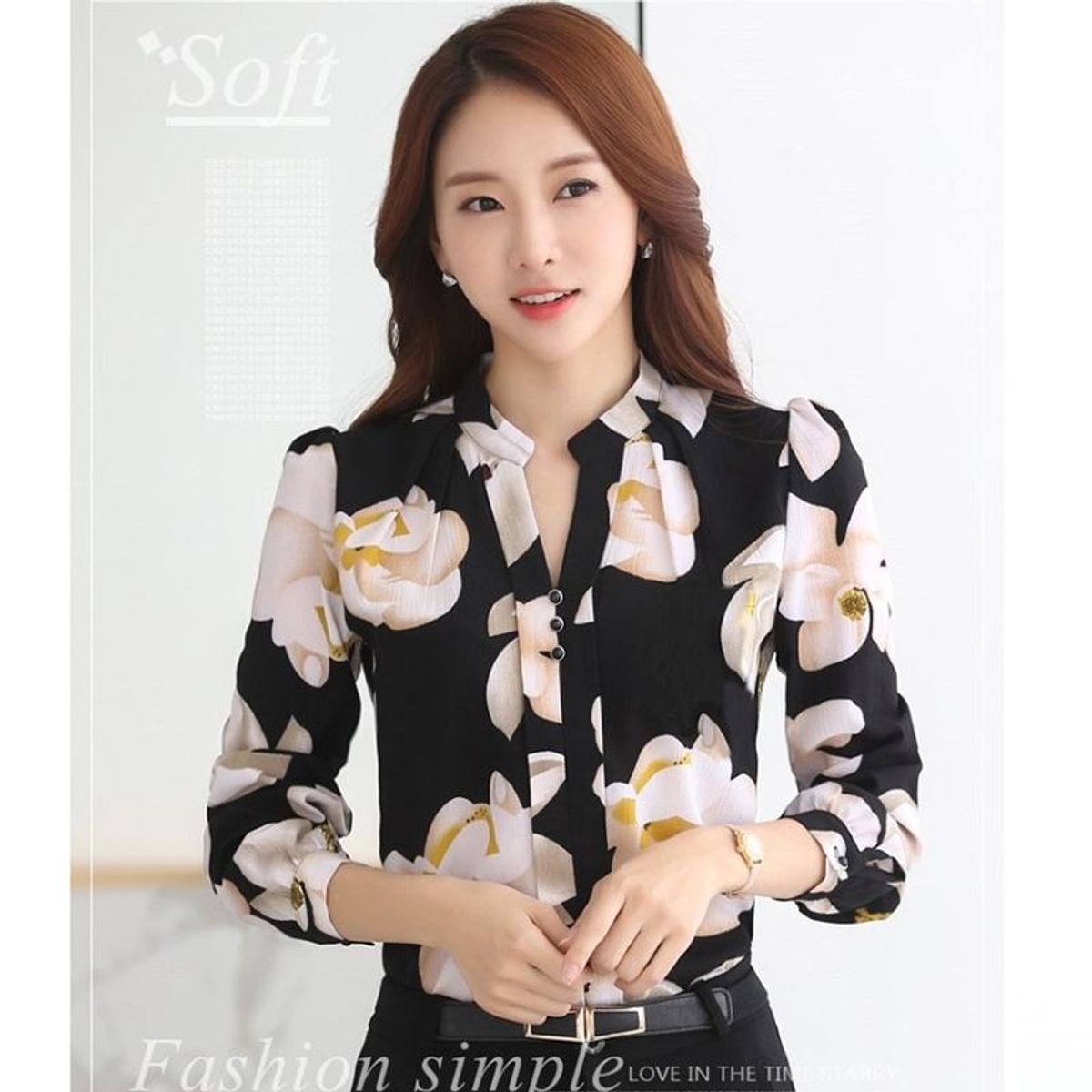 Áo Sơ Mi Hoa Lan Trắng Cổ Trụ Kiểu dáng: tay dài, cổ trụ V Màu sắc: họa tiết hoa Chất liệu: cát nhật mịn mát
