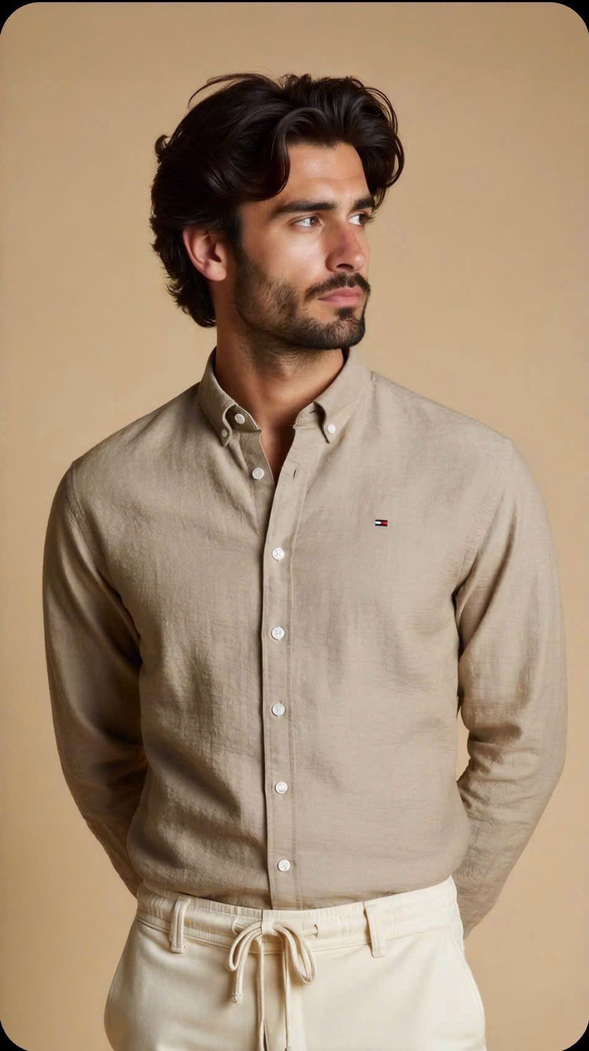 👉Chất liệu Linnen 100% , Wash mềm vải mịn vải tưng , sợi tencel chống nhăn chất hút mồ hôi thoải mái . LOGO ngực thêu sắt nét