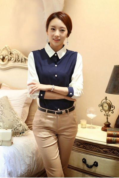 Áo sơ mi phối màu Trắng Xanh mang đến bạn gái nét thanh lịch, trẻ trung và vô cùng duyên dáng.