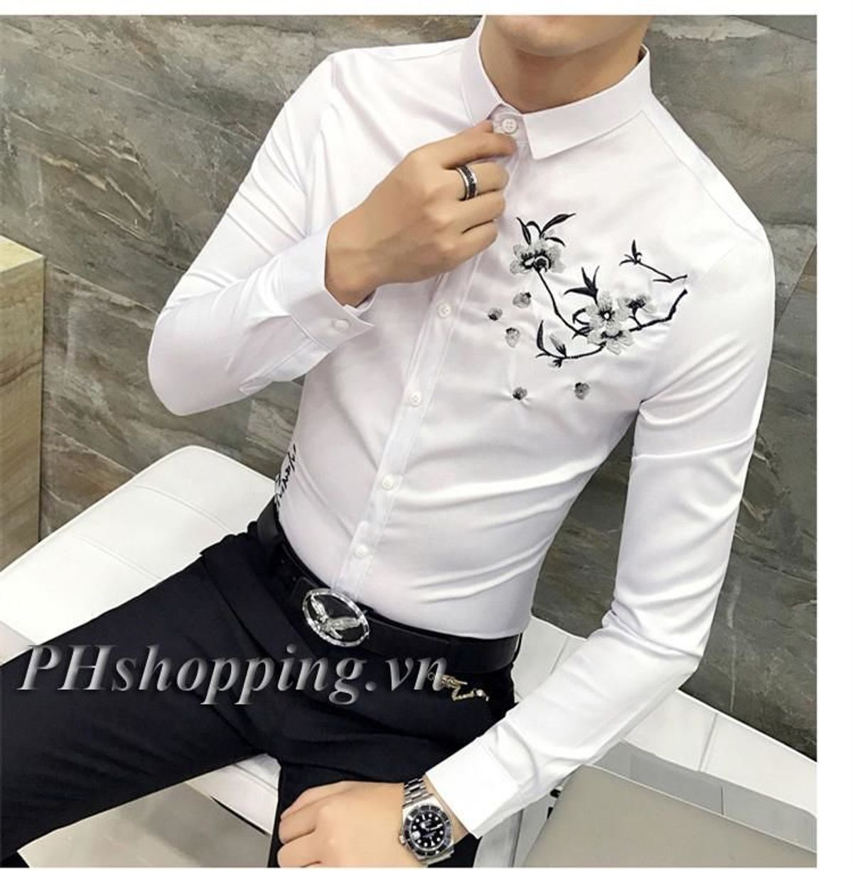 Áo sơ mi thêu cành Đào giá sỉ/bán buôn