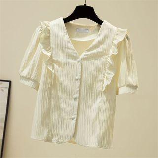 Áo sơ mi nữ cổ V tay ngắn phong cách Hàn Quốc
