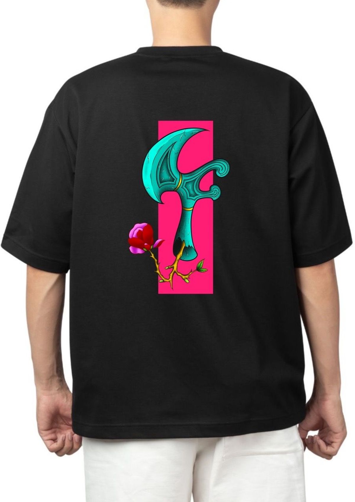 Mọc lên từ cán rìu là Hoa Mộc Lan đỏ rực, biểu trưng cho vẻ đẹp cao quý và khả năng tái sinh mạnh mẽ. Sự kết hợp này đại diện cho sự cân cằng hoàn hảo giữa tính Dũng Cảm (rìu) và Duyên Dáng (hoa).