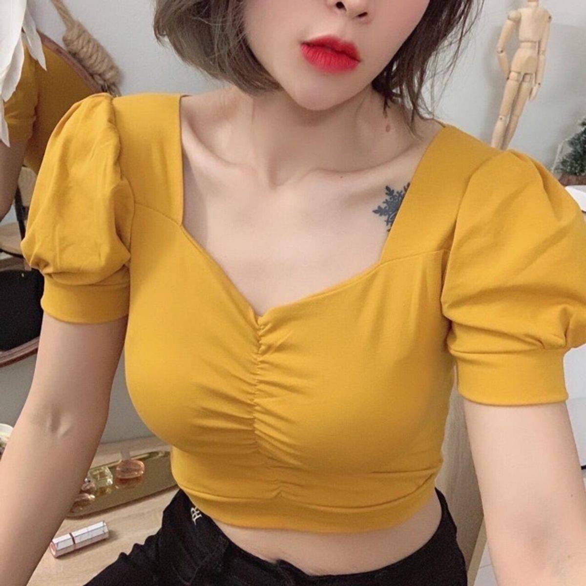 Áo crop sexy tay phồng chất kate xịn (hình chụp thật)