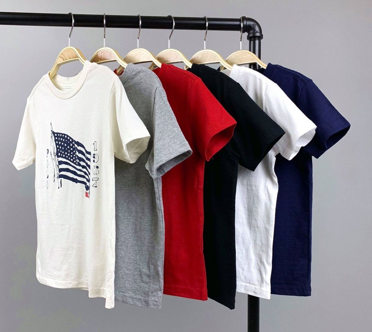Áo thun CỔ TRÒN thêu Logo Ngựa & In Đắp Cờ Mĩ bé trai. Size 2-18/20T Bố cao 1m70 mặc size 18/20T. Có thể mặc Đồng phục gia đình. GUATEMALA . 6/8 MÀU. Hàng mới 2018, đang on Hãng.