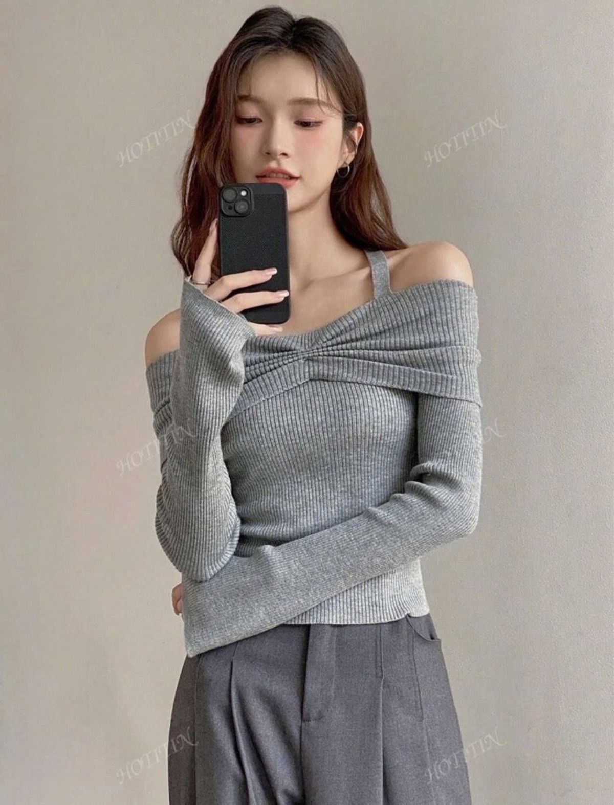 Áo thun bẹt vai tay dàiChất liệu: Len tăm đũaMàu: Đen-đỏ đô- xám-trắngfreeize dưới 53kg