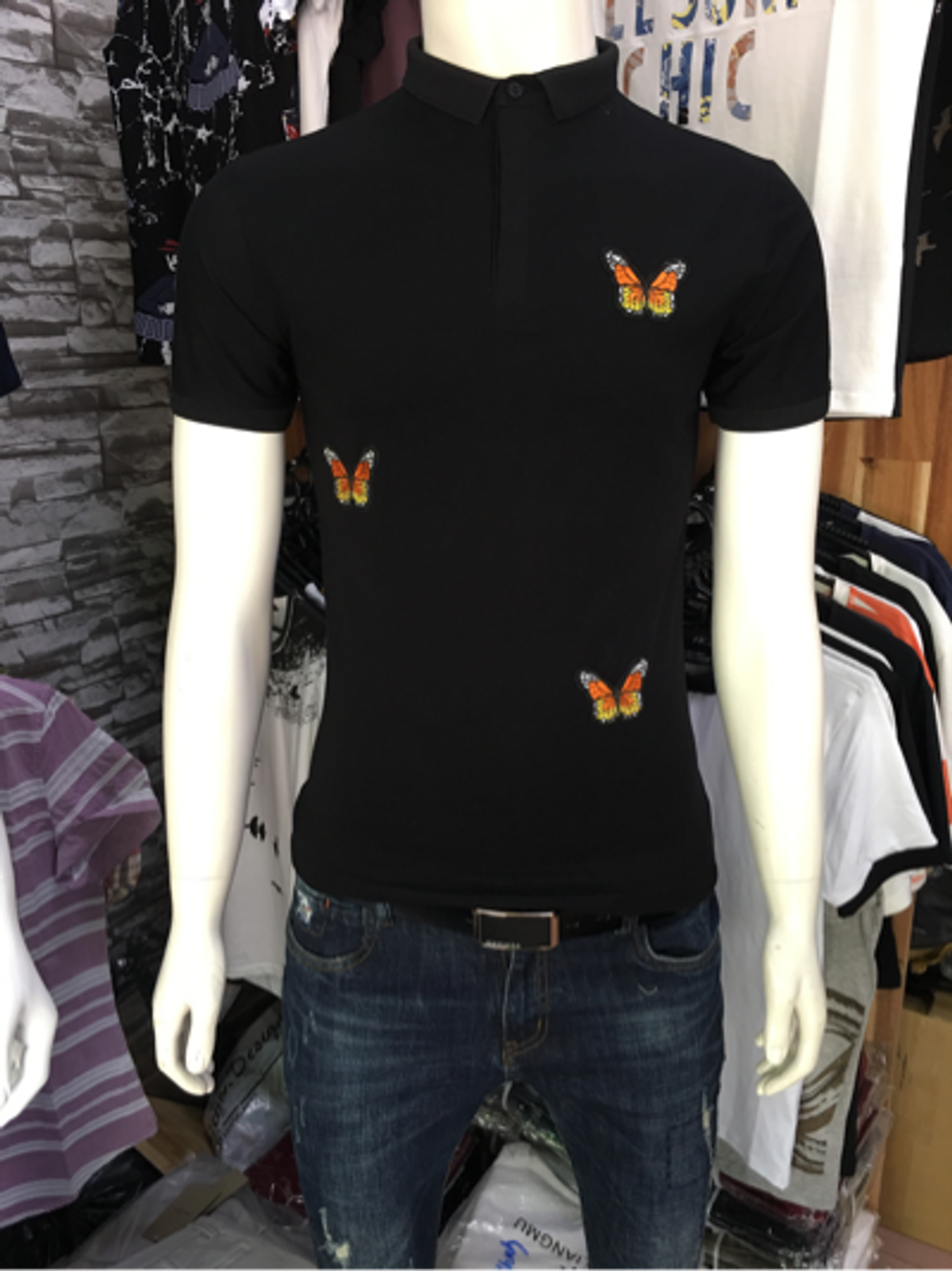 Áo thun cổ thêu hình giá sỉ - giá bán buôn