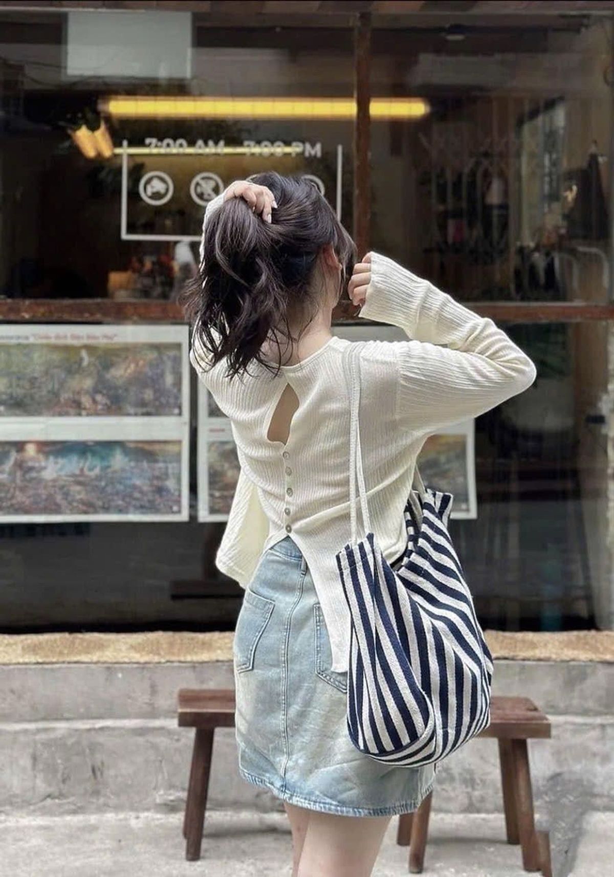 Áo thun form rộng xẻ tà nút sau giá sỉ/bán buôn