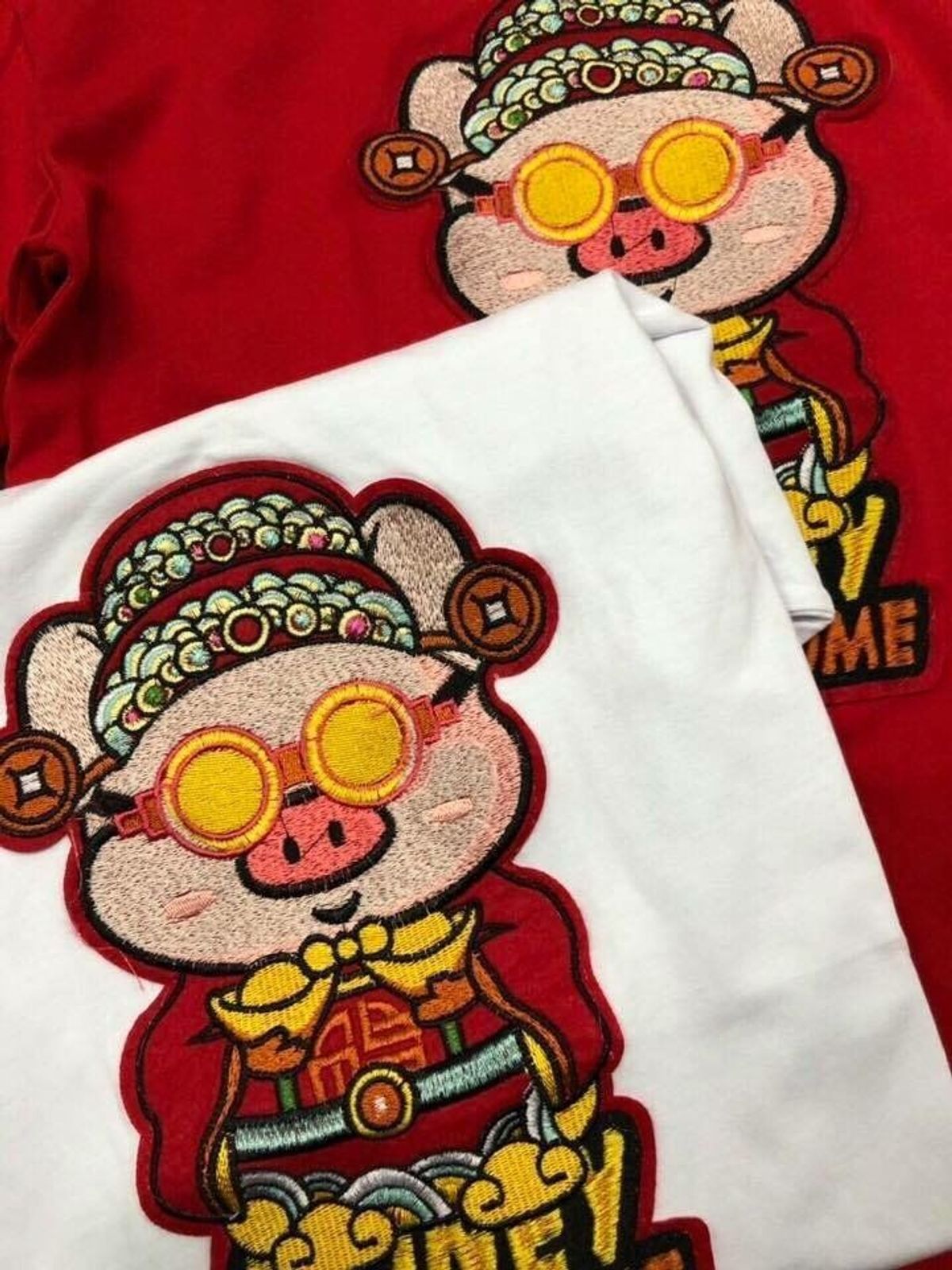 Logo heo thần tài siêu kute may đính kèm áo siêu nét