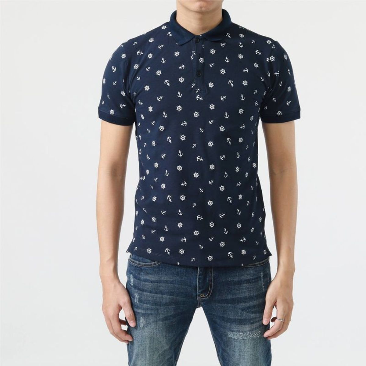 Chất thun cotton 100% mềm mịn mặc rất mát, dai vải, họa tiết mỏ neo in, cổ nhỏ thanh cảnh, phom Slim-Fit ôm gọn đẹp