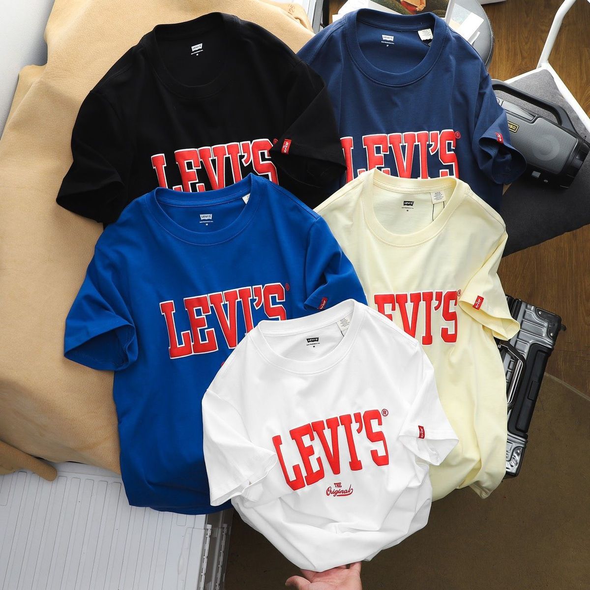 LEVI’S LOGO PRINT TSHIRT - 5 COLORS Về hàng mẫu áo thun in nhung nhà Levis - Thương hiệu quốc dân không bao giờ lỗi mốt Chất liệu : Cotton 100%, bề mặt vải mịn mát, thấm hút tốt. Style Unisex nam nữ đều mang được. Vải cotton 2C cao cấp, bo dệt đồng màu từng áo. In lụa phồng xịn sò. Phụ kiện đầy đủ. Form : SlimFit (55-85kg)Size : SMLXL - 2222