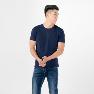 Áo thun nam Gold Rhino cổ tròn màu xanh đen - MC03
