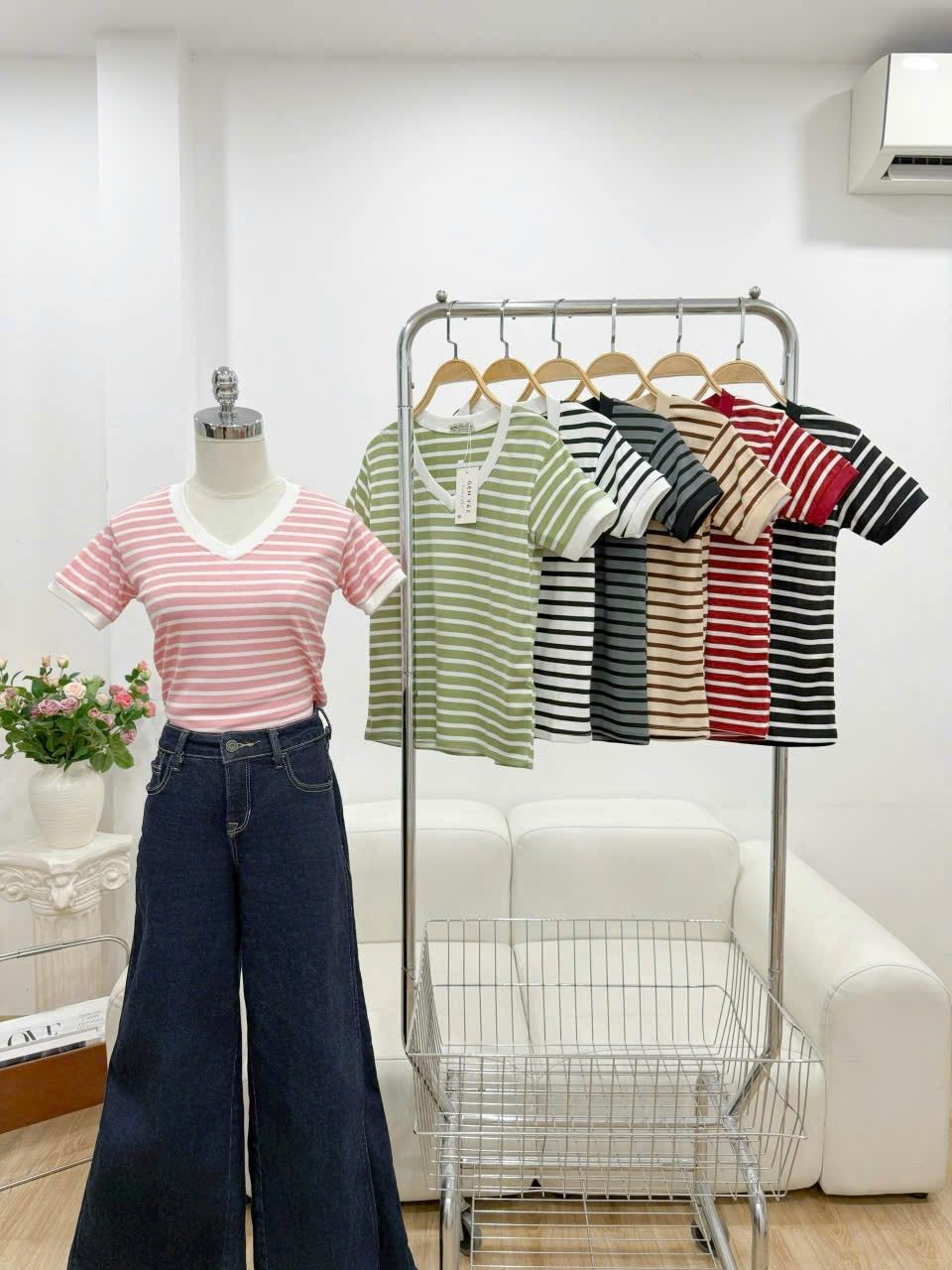 #Áo thun nữ sọc mẫu mới mang kiểu dáng đơn giản , trẻ trung.