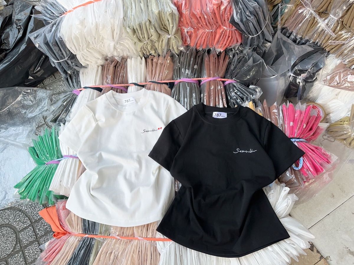 Áo thun ôm cổ tròn tay ngắn chữ thêuÔM BODYÁo phông form ôm nổi bật đường cong quyến rũ