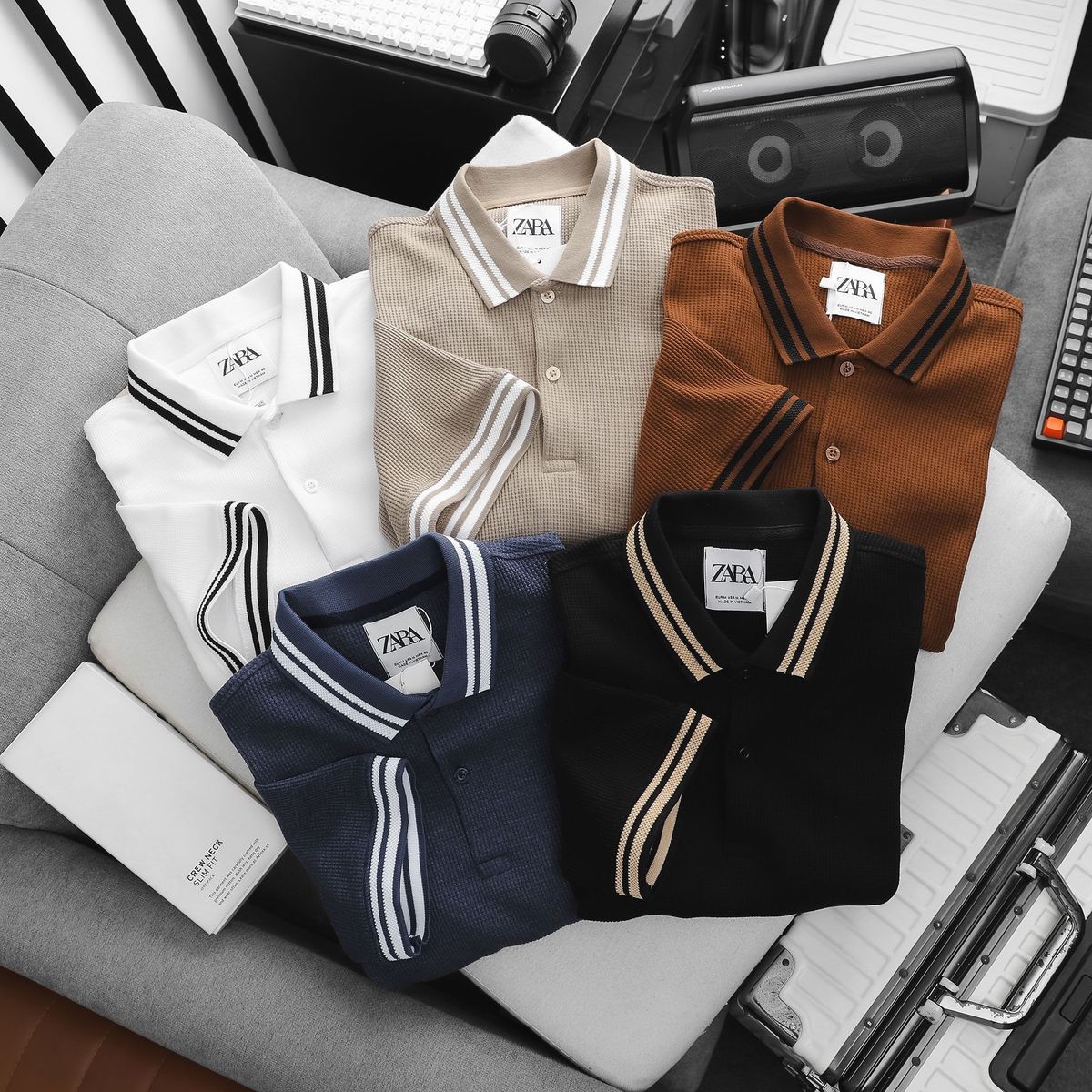 Zara Polo Cotton Textured Shirt .