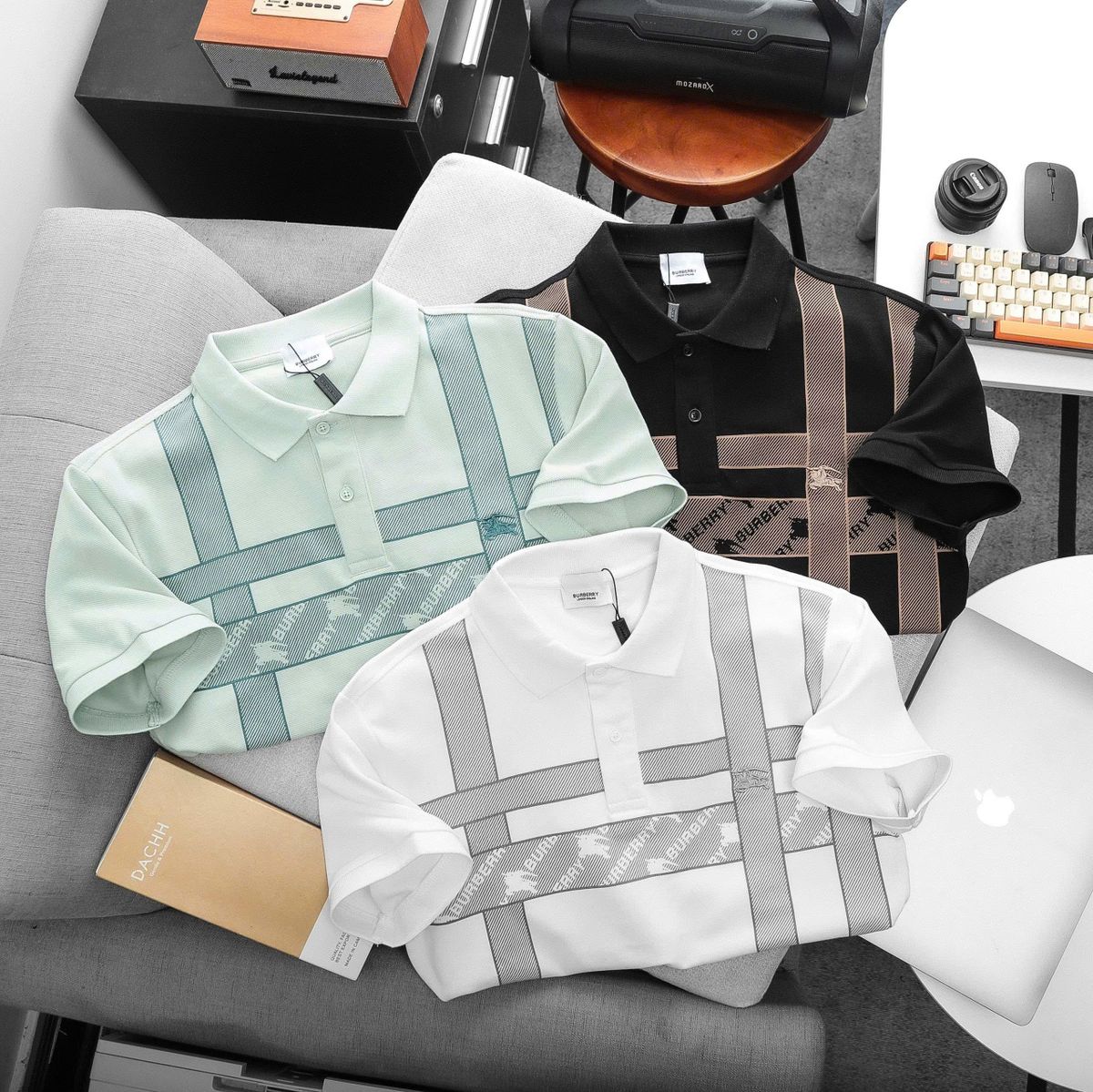 POLO B.U.R.BE.R.R.Y SỌC LOGO THÊU