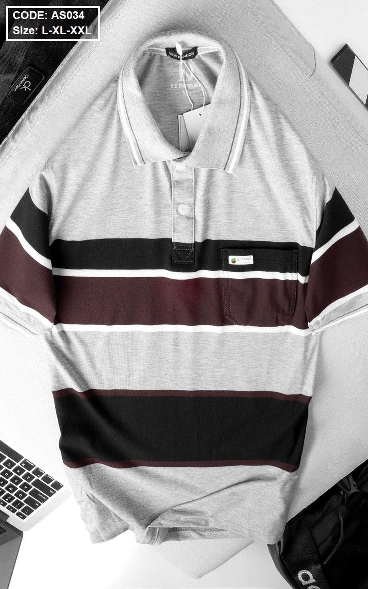 Xưởng sỉ Áo thun sọc nam có cổ có túi thun cotton không xù lông cao cấp