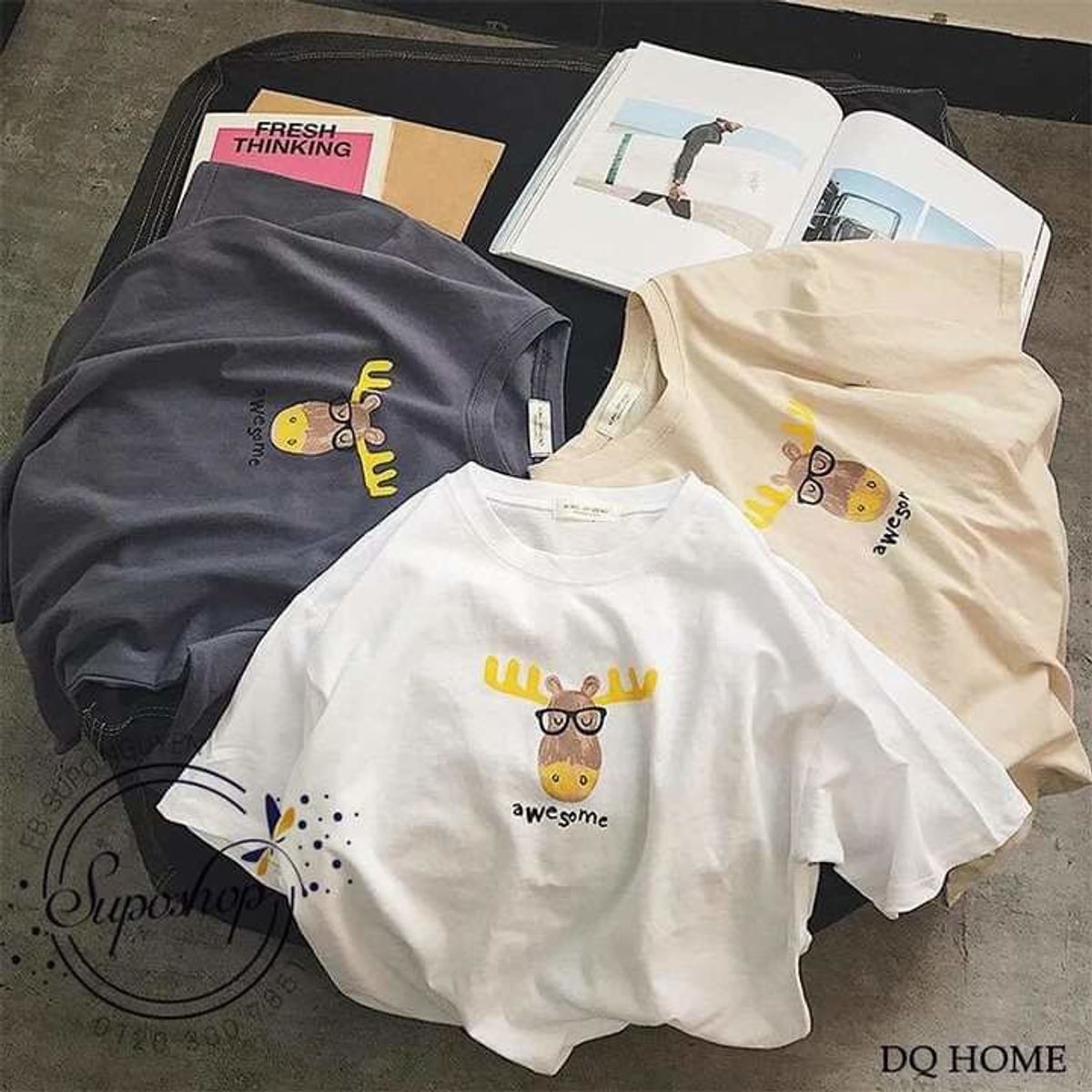 ÁO THUN TAY LỠ THÊU HÌNH ĐẸP
