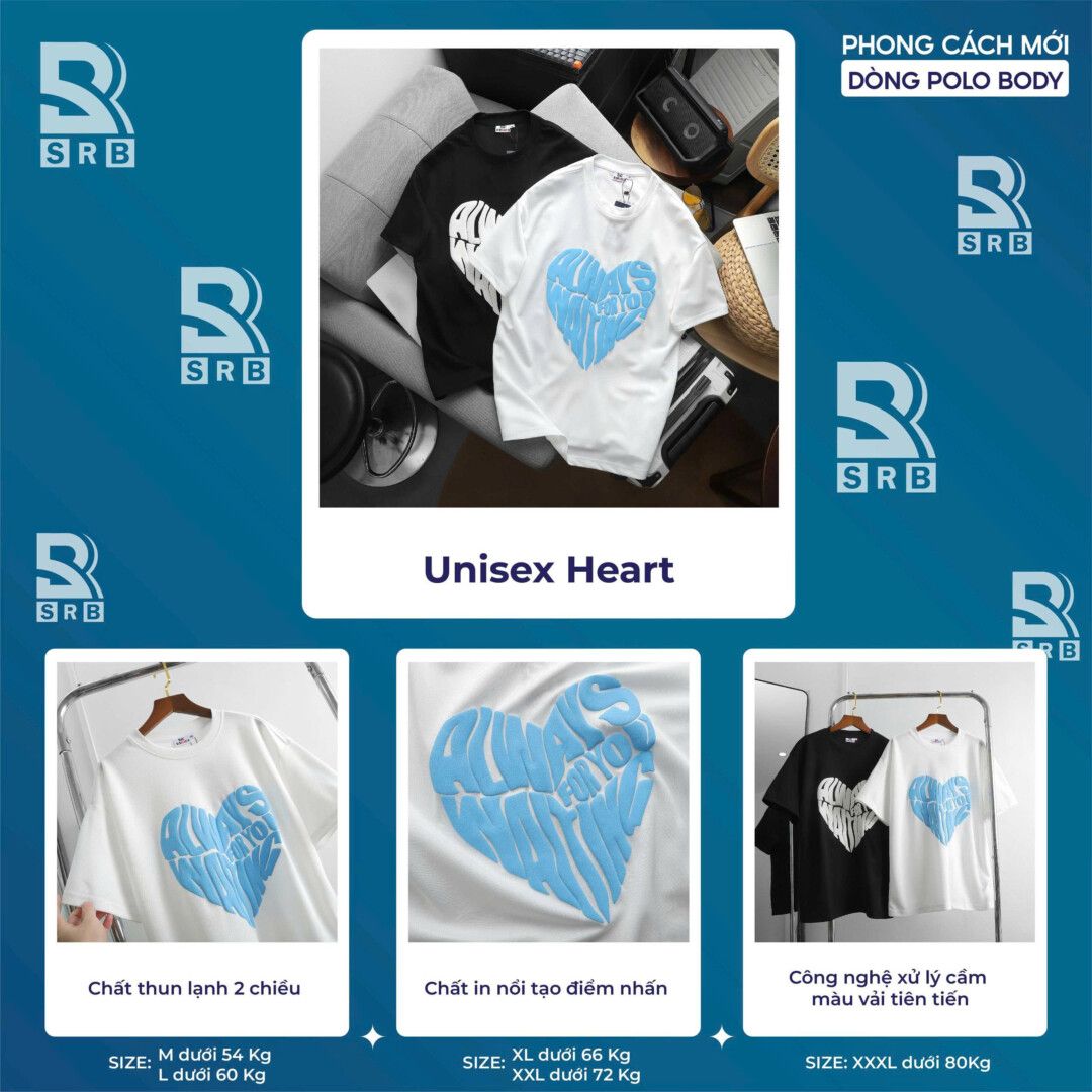 Áo Thun Unisex Heart Form Rộng Nam Nữ Thun Lạnh Co Giãn 4 Chiều In Nổi Cá Tính