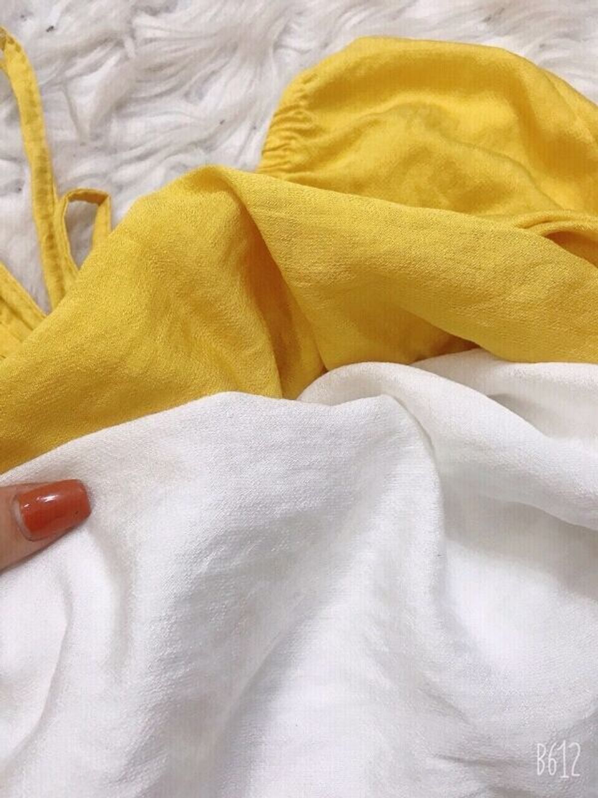 áo trễ vai đan dây với chất liệu đũi tàu kèm hình thật