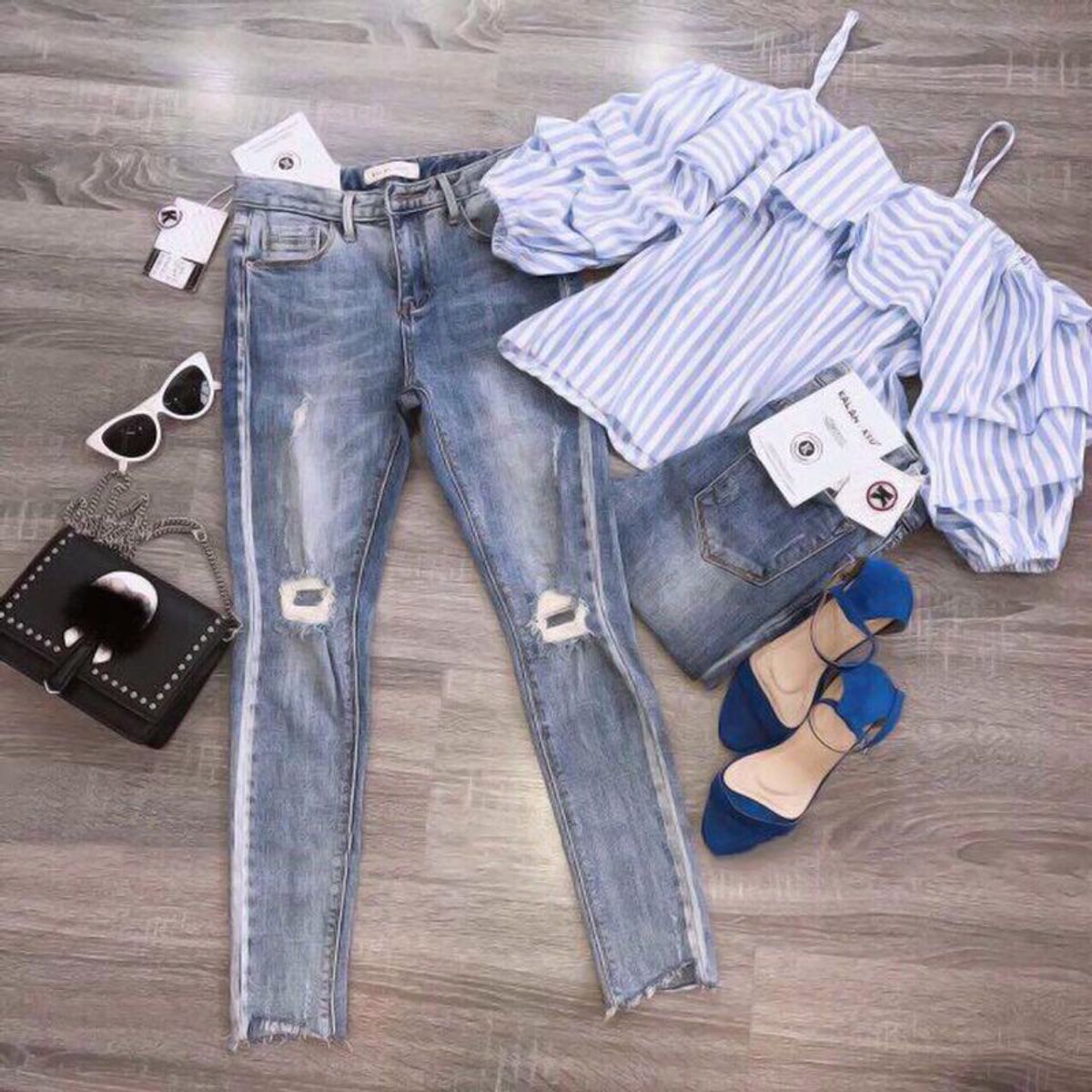 Áo trễ vai sọc với thiết kế phần bèo nhún phần tay loe 2 tầng bồng bềnh nhẹ nhàng. SỈ TRÊN 50c/MẪU