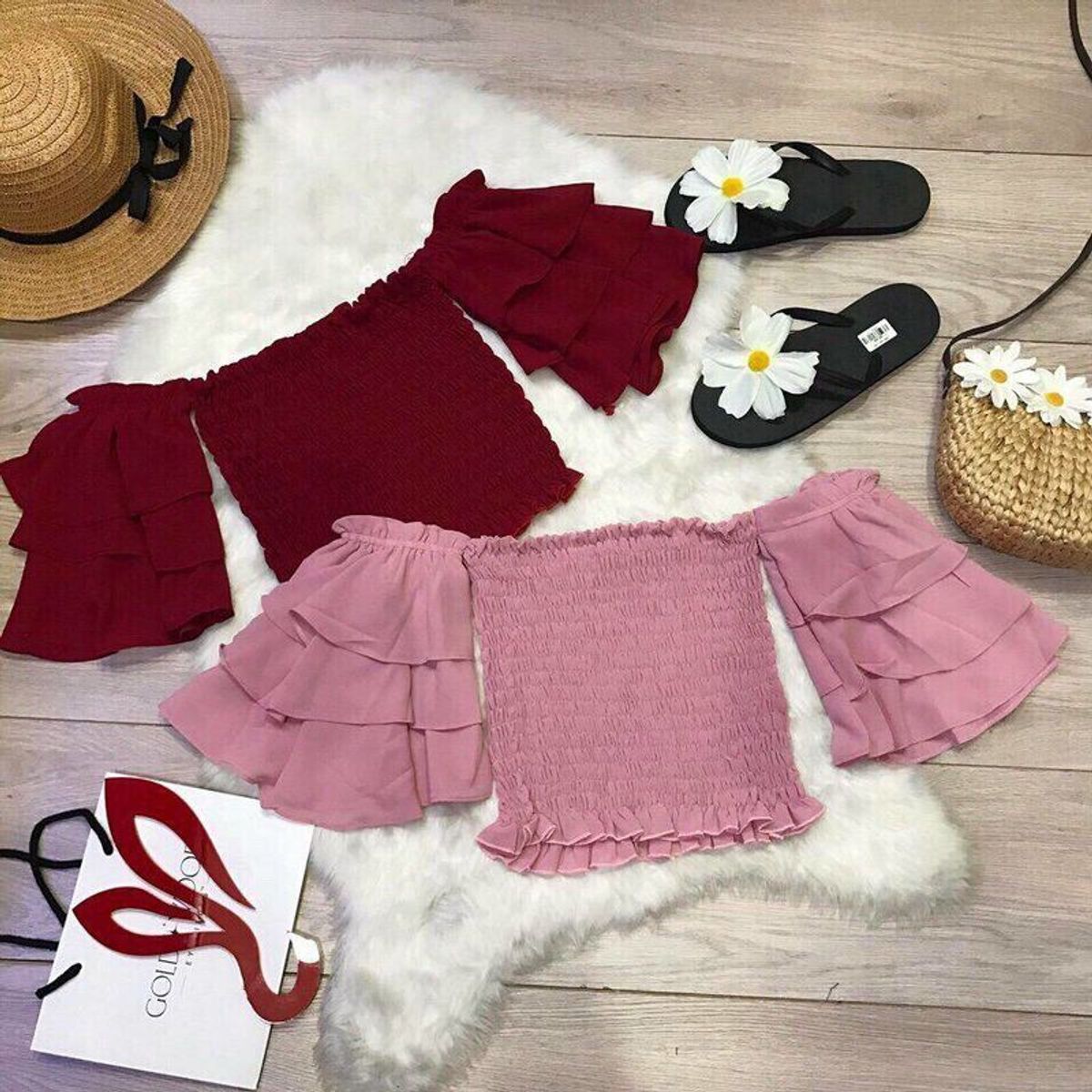 áo voan bẹt vai 3 tầng loe giá sỉ - giá bán buôn