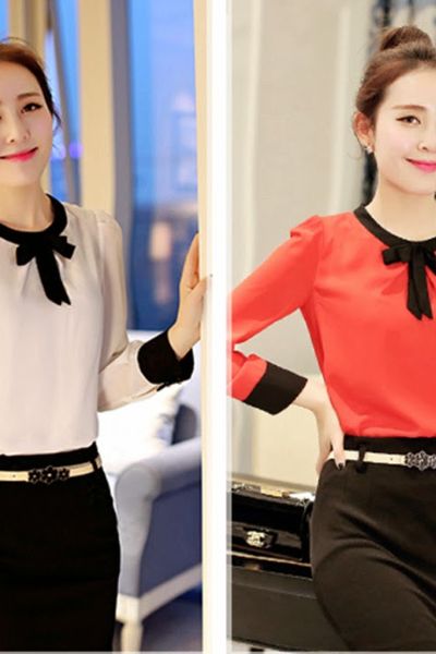 Áo voan cổ tròn thắt nơ - mc109 ms1238 giá sỉ/bán buôn