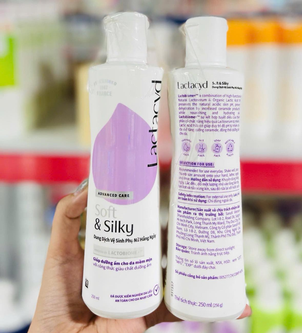 Dung dịch vệ sinh Lactacyd 250ml Tím giúp vệ sinh nhẹ nhàng, kháng khuẩn, cân bằng độ pH và bảo vệ vùng nhạy cảm, mang lại cảm giác tự tin 🌿💧.