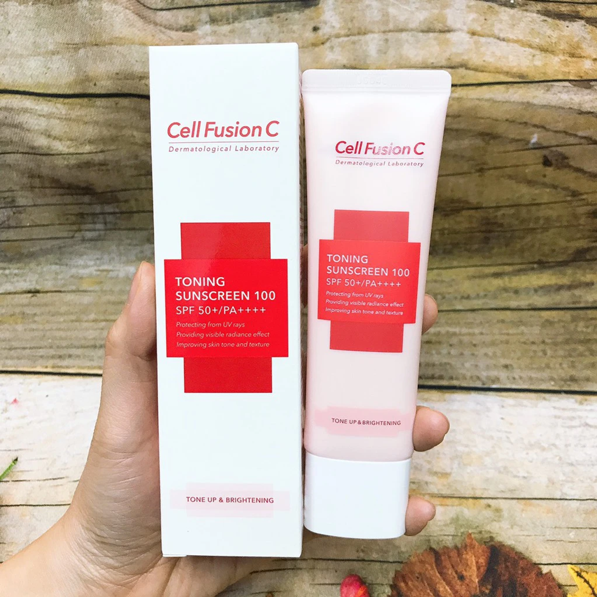 Kem chống nắng Cell Fusion C Hồng 50ml giúp bảo vệ da khỏi tia UVA/UVB, dưỡng ẩm và làm sáng da, mang lại làn da mềm mại, tươi trẻ 🌸💧.