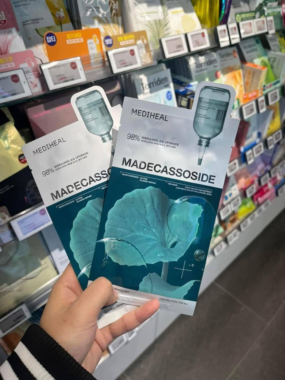 Mediheal Madecassoside Mask 🌿 giúp làm dịu, phục hồi da nhạy cảm, giảm kích ứng và mẩn đỏ nhờ chiết xuất từ rau má.