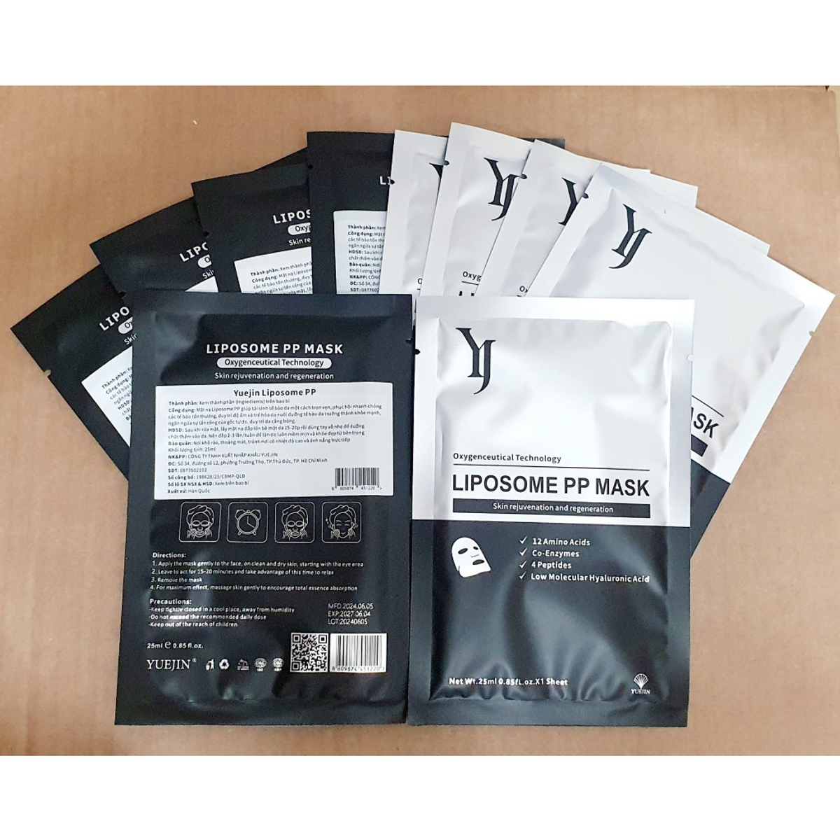 Mặt nạ Yuejin Liposome Đen giúp cấp ẩm sâu, tái tạo làn da, mang lại vẻ căng mịn và rạng rỡ 🌿💧. Chất liệu mặt nạ mềm mại, ôm sát da ✨.