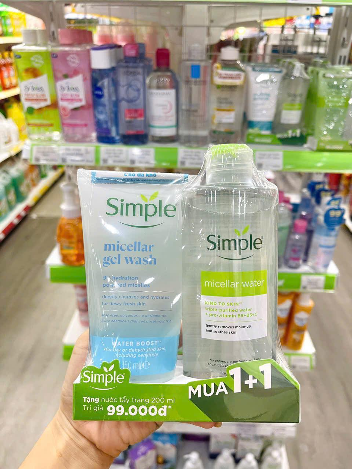 Set Sữa rửa mặt + Tẩy trang Simple (150ml + 200ml) là lựa chọn hoàn hảo cho làn da nhạy cảm, mang lại quy trình làm sạch kép hiệu quả và an toàn. Sữa rửa mặt Simple giúp loại bỏ bụi bẩn, dầu thừa dịu nhẹ, giữ cho da luôn mềm mại, thông thoáng. Nước tẩy trang Simple Micellar Water dễ dàng cuốn trôi lớp trang điểm, bụi mịn và tạp chất mà không gây khô da. Với công thức không chứa cồn, hương liệu hay chất tạo màu, bộ đôi này cực kỳ lành tính, phù hợp sử dụng hằng ngày cho mọi loại da.