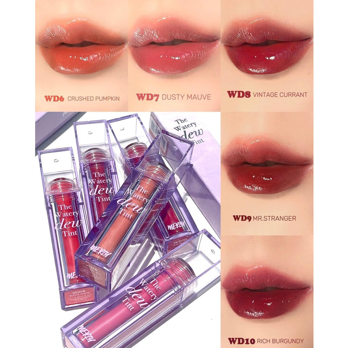 Merzy The Watery Dew Tint 💧 là son tint bóng nhẹ, dưỡng ẩm môi, lên màu chuẩn, tạo đôi môi căng mọng, tự nhiên và rạng rỡ.