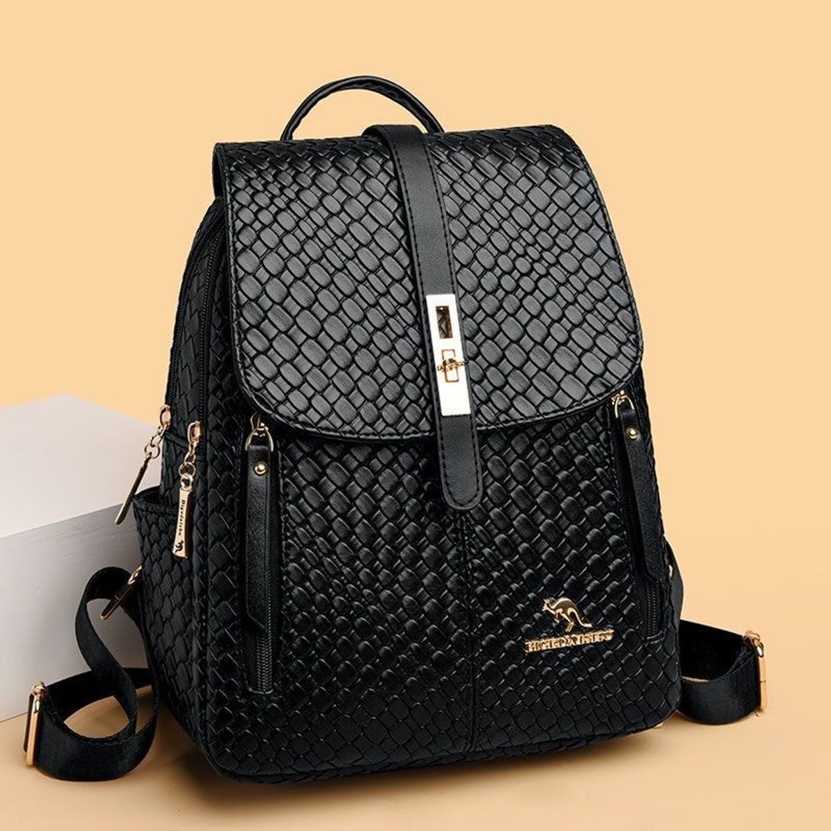 Ba lô đi học, ba lô đi chơi da vân cá khóa xoay 2 ngăn K706