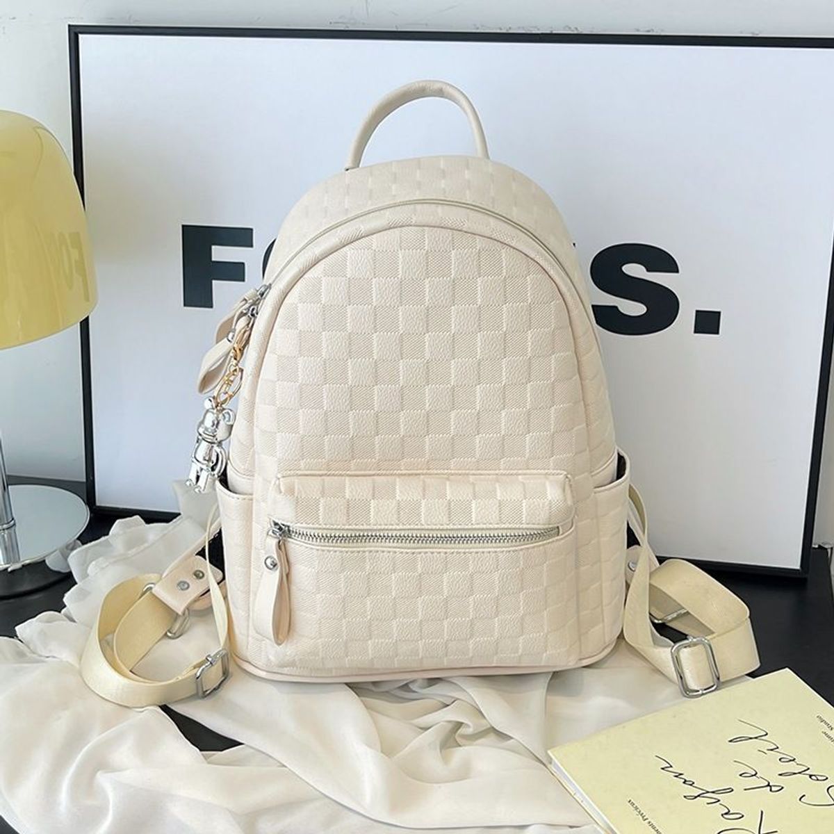 Balo da quai to có đệm mút đi học, ba lô đi chơi da PU dập vân caro K715