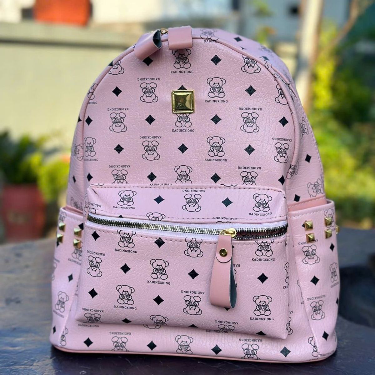 Balo da quai to có đệm mút đi học, balo đi chơi họa tiết hình gấu from cứng cáp K714