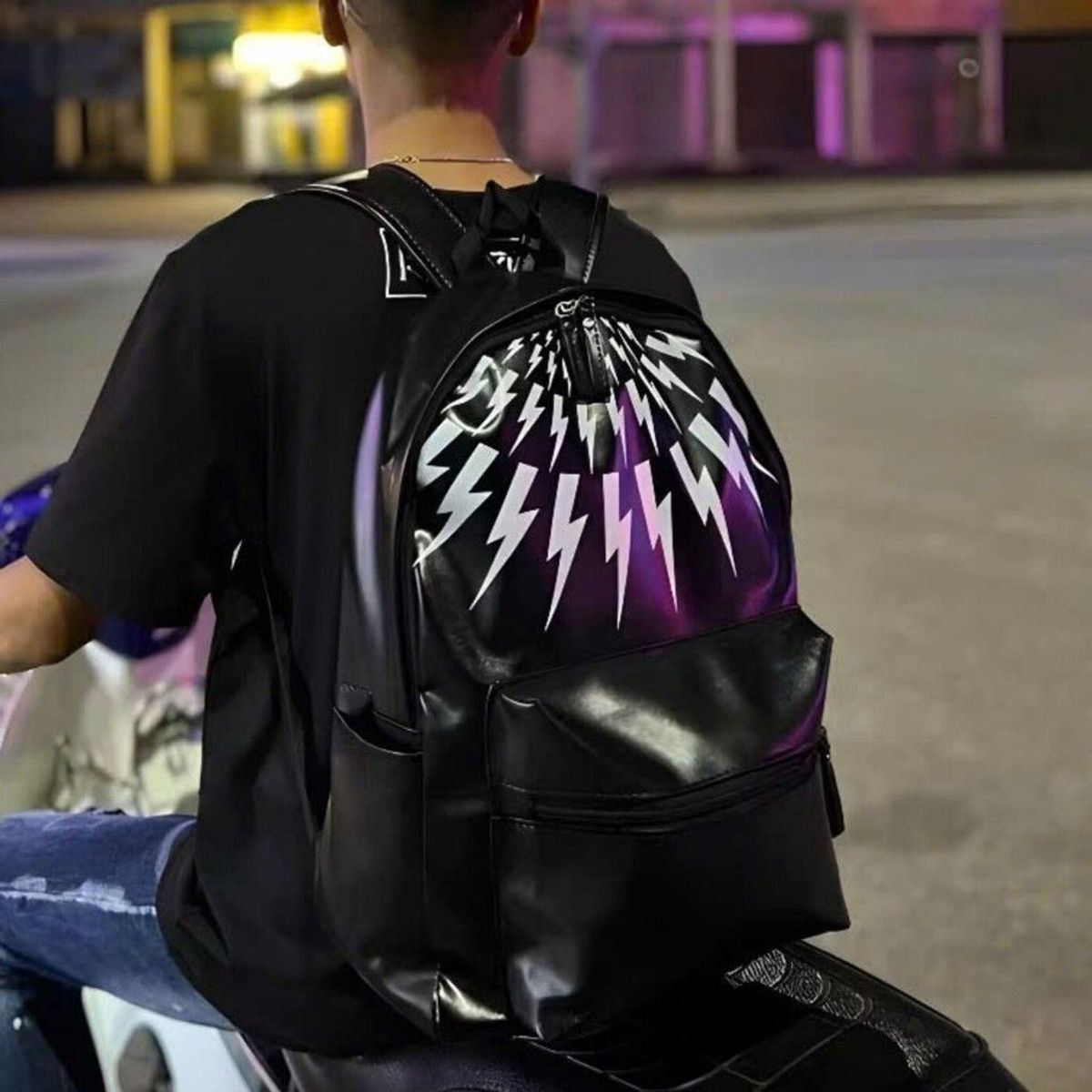Balo đi học, ba lô đi chơi đựng vừa sách vở a4 da bóng họa tiết tia sét, quai đeo bản to K634