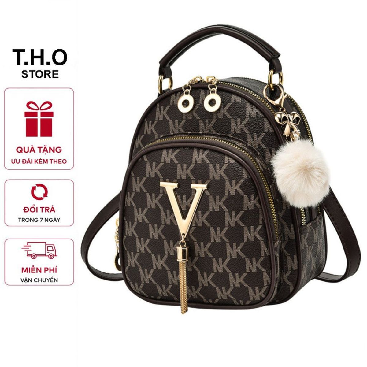 Balo đi học, balo đi chơi họa tiết kẻ ô đính kèm chữ V K359