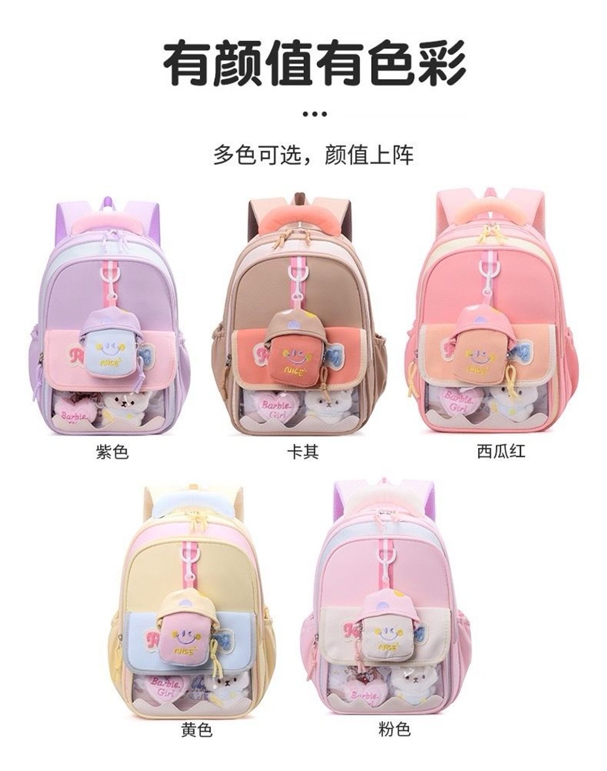 Mẫu balo thiết kế tone hồng pastel nhẹ nhàng, phối túi trước hình thú đáng yêu, cực kỳ phù hợp cho bé gái mẫu giáo – tiểu học.