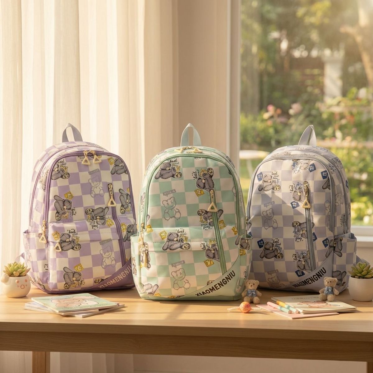 🎒 BALO NỮ HỌA TIẾT GẤU Ô VUÔNG – MÃ A6608